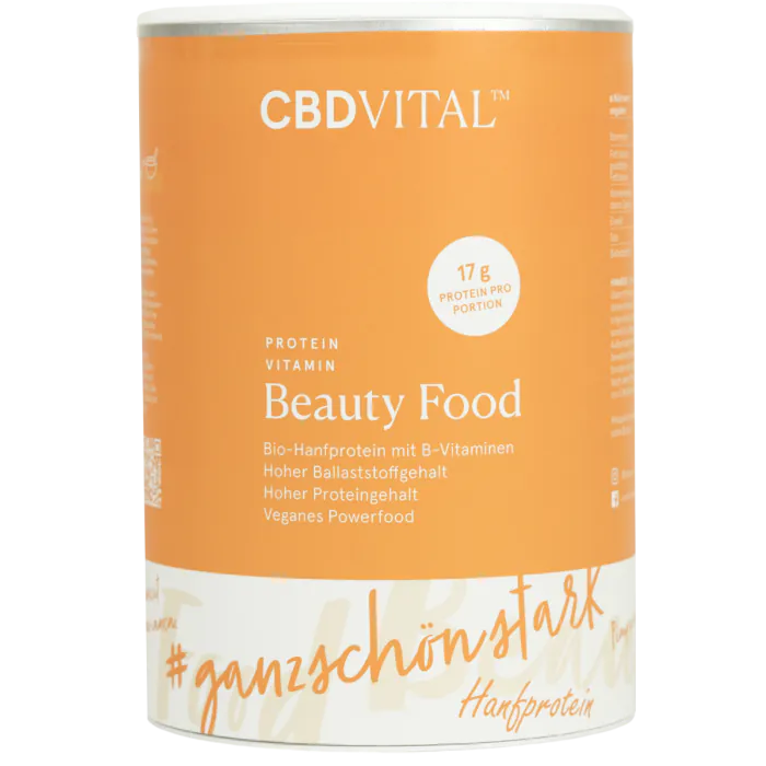 Das Proteinvitamin CBD VITAL Beauty Food liefert gleichermaßen gut verträgliches Eiweiß und essenzielle B-Vitamine, Chrom, Eisen, Selen, Magnesium sowie Grüntee-Extrakt. Auch für eine bessere Verdauung lässt sich das Proteinvitamin einsetzen, denn es ist reich an unverdaulichen Ballaststoffen, die wichtige Nährstoffe für die Darmflora liefern. Die orthomolekularen Mikronährstoffe liegen in einer idealen, synergistischen Zusammensetzung und einzigartigen Komplexität vor. Sie fördern das körperliche Wohlbefinden und steigern die physische und psychische Leistungskraft.